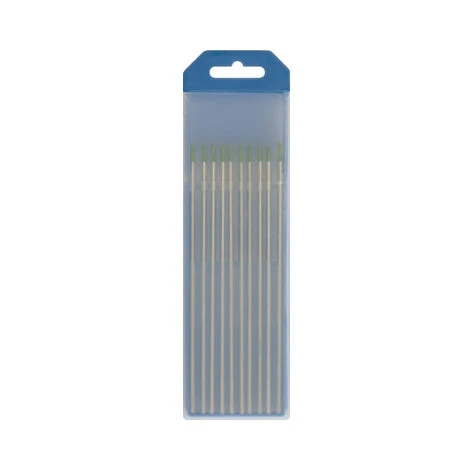Ces électrodes de soudage tungstène WP, d’extrémité verte, sont conçues sans additifs, avec un tungstène pur et non radioactif. Cela favorisera la stabilité de l’arc lors du travail de l’aluminium et de ses alliages. Ces accessoires de soudage TIG permettent la formation d’une bille bien formée à l’extrémité de l’électrode. Elle se formera spontanément dès les premières secondes. Ces pièces d’usure s’utilisent uniquement en courant alternatif (AC). Ces consommables ne nécessitent pas d’affutage. Diamètre: 32 mm Longueur: 150 mm Nombre d’électrodes dans sa pochette: 10 EN26848 ISO 6848