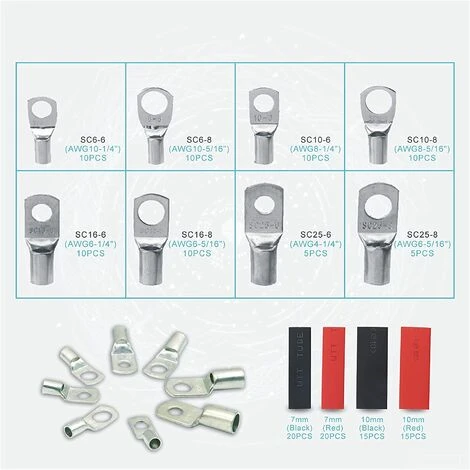 Large gamme d’applications : différentes cosses de câble sont disponibles pour une maintenance électrique rapide. Convient aux garages, électriciens, pièces automobiles, ateliers, mécaniciens, camions, motos, etc.