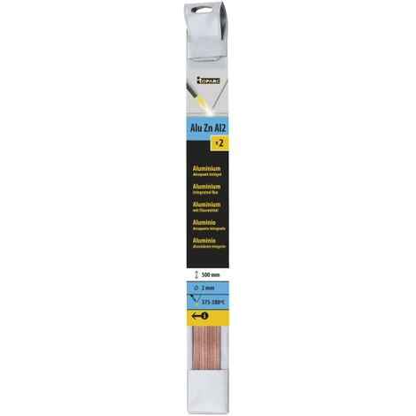 Ces baguettes de métal d’apport GYS sont idéales pour la soudure flamme de l’aluminium pur ou l’aluminium mélangé à du cuivre. Ces consommables de soudure au chalumeau sont composées à 98 % de Zinc et de 2% d’Aluminium. Elles sont utilisées principalement pour la fabrication et la réparation d’éléments de réfrigirations, comme les climatisations, car elles possèdent une excellente capillarité et un allongement élevé. La capillarité permettra au métal d’apport d’avoir une grande facilité à se déposer sur la matière; même contre la force de gravité si vous en avez le besoin. De plus, ces baguettes sont incoporées de décapants. Ce produit évite l’oxydation des pièces et donc une potentielle décoloration, corrosion, ou des fissures pouvant fragiliser le cordon de soudure. La température idéale et conseillée pour utiliser les baguettes est à 380°. Mais elles ont un intervalle de fusion partant de 375° jusqu’à 388°.