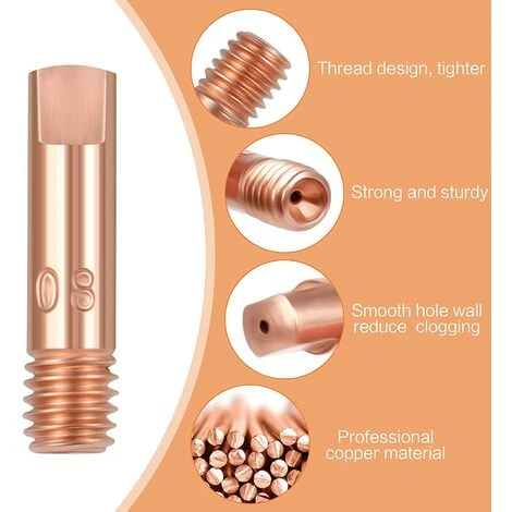 Matériau durable: les pointes de soudage mig 0.8 sont en cuivre rouge de haute qualité avec une bonne conductivité électrique. Résistance aux températures élevées, résistance à la corrosion, résistance à la rouille et longue durée de vie.