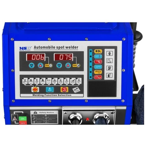 Grâce aux accessoires fournis, vous pourrez souder des écrous ronds ou triangulaires, des goupilles, des vis et des fils d’acier avec la fonction adaptée pour ensuite pouvoir éliminer les bosses progressivement au moyen d’une pince ou d’un marteau de débosselage. Vos réglages peuvent être effectués avec précision et rapidement sur un panneau de commande numérique. Le mode automatique correspond à un courant de soudage dont la puissance peut s’élever jusqu’à 5000 A pendant le temps de soudage prédéfinis. En mode manuel, le courant de soudage peut être réglé indépendamment du temps de soudage et ce dernier peut être déterminé entre 0,01 et 999 secondes.