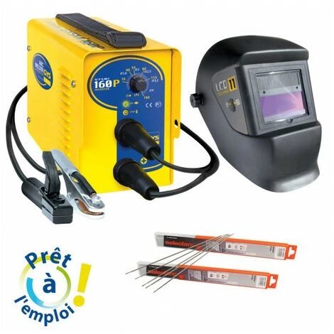 – Livré avec câble de masse, porte-électrode et masque LCD (teinte 11)