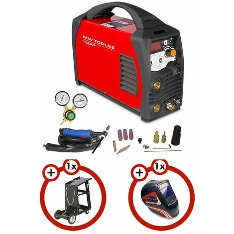 Livré avec torche TIG 4 m, câble de masse 16 mm³ 3 m et détendeur de gaz avec double manomètre.