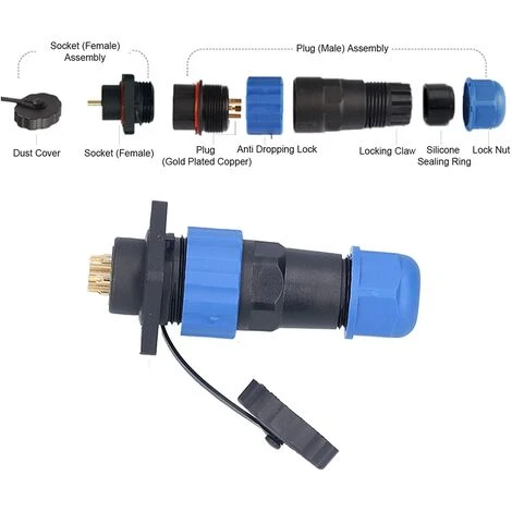Bonne performance : prise de courant aviation avec protection étanche IP68, tension de fonctionnement 250 V.