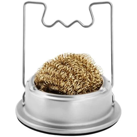 Le nettoyeur de panne à souder est une éponge en laiton qui garantit un nettoyage en profondeur, sans devoir être humidifiée, et donc sans faire baisser la température de la panne. De cette façon, le fer est toujours prêt à l’utilisation et sa panne propre assure une transmission de chaleur parfaite. Compact et léger, le support de fer à souder peut être placé partout où il est requis pour permettre un travail en tout confort. Grâce à sa face inférieure recouverte de caoutchouc antidérapant, cet accessoire en acier présente une excellente stabilité et il ne raye pas le plan de travail. Une fois le soudage terminé, le support de fer à souder avec éponge métallique est très facile à ranger.