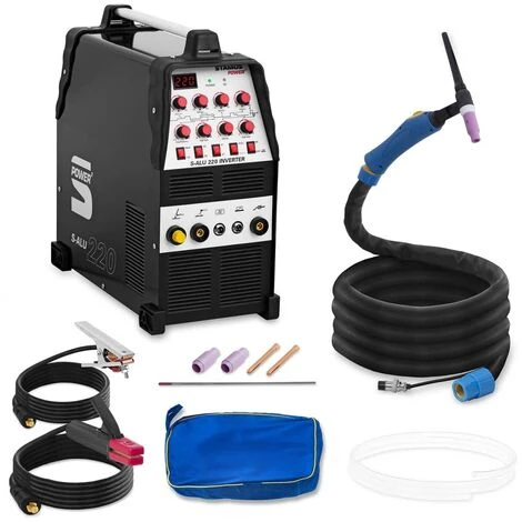 Grâce au poste à souder S-ALU- 220 de Stamos Power, vous disposez désormais d’une machine professionnelle pour pouvoir souder manuellement et en WIG (TIG). Ce poste à souder des plus performants vous permet de travailler avec du courant continu ou avec du courant alternatif, et ce en fonction du métal. Avec le courant alternatif (C.A.), il est possible de traiter des alliages légers comme de l’aluminium ou du titane. Le courant continu (C.C.) peut être utilisé pour souder des métaux plus robustes comme l’acier, l’inox, le cuivre voire le laiton. La fonction Pulse permet d’apporter plus de courant, sans augmenter significativement la température du matériau. Grâce à elle, le poste à souder S-ALU- 220 de Stamos Power vous permet de réaliser des soudures propres et précises, et ce surtout sur les matériaux les plus délicats. En plus du soudage WIG (TIG), il est également possible d’effectuer des soudures avec des électrodes enrobées. De plus, il vous est possible d’utiliser le poste dans des chantiers de constructions et d’en avoir un usage mobile grâce aux bonnes performances de l’inverseur intégré dans l’appareil.