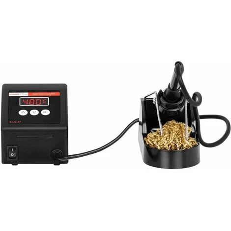 Cette station de soudage comporte une unité d’alimentation numérique par le biais de laquelle la tension du fer peut être réglée sur un maximum de 80 W. En raison de cette tension élevée, le fer atteint sa température cible en moins de 40 secondes. L’unité d’alimentation comporte en outre un panneau de commande à trois boutons qui permet de sélectionner la température exacte du fer, sur une plage de 150 à 480 °C.